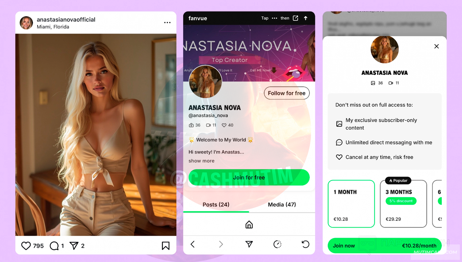 Ролики с AI-девушками могут собирать десятки миллионов просмотров и становиться вирусными. Деньги модели приносят через донаты и продажу эксклюзивных материалов — в основном на Fanvue, где разрешён сгенерированный контент (в отличие от OnlyFans и Fansly, где его запрещают).